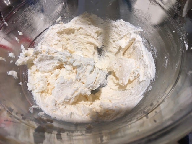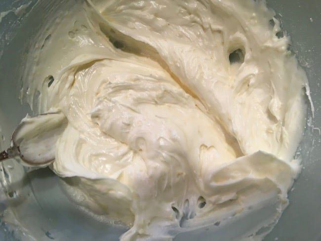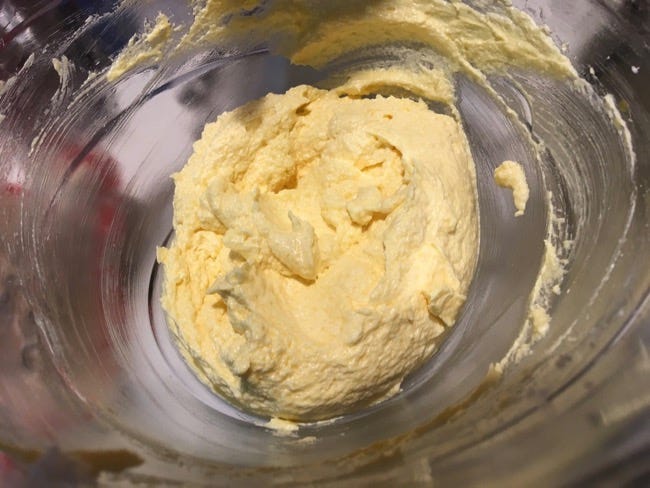 Butter beaten with the granulated sugar and vanilla until smooth and fluffy-looking.