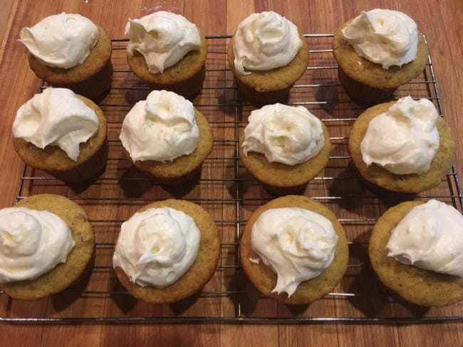 Banana Black Walnut Cupcakes with Zesty Lemon Icing