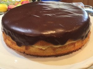 The cake, a hot milk sponge, is an oldie that combines the tenderness of a butter cake with the airiness of a sponge cake. It’s easy to make and tastes great. And instead of baking two layers, you bake one and split it. The pastry cream is a classic nineteenth century recipe made more modern and extra smooth with egg yolks and a little heavy cream. And the chocolate glaze is a popular twentieth century ganache—chocolate melted in heavy cream—which takes hardly any work at all. Boston Cream Pie is wonderful any time of the year and for any occasion. How about right now? It’s no surprise that in 1996 it was proclaimed the Official State Dessert of Massachusetts.