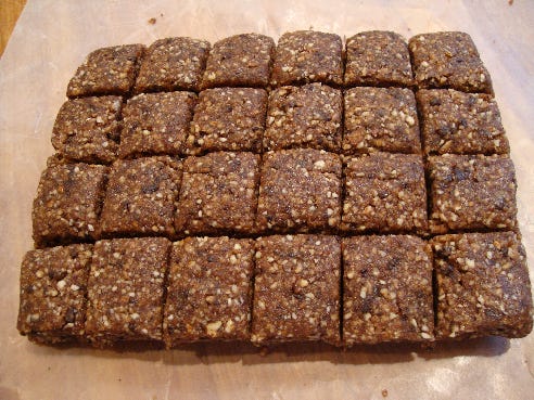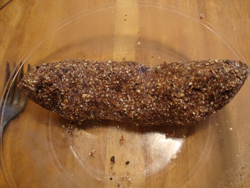Food processor to the rescue! I ground the almonds with unsweetened chocolate and sugar until they formed a fine meal. This I dumped into a large bowl. To hold everything together, I stirred in egg whites with almond and vanilla extracts.