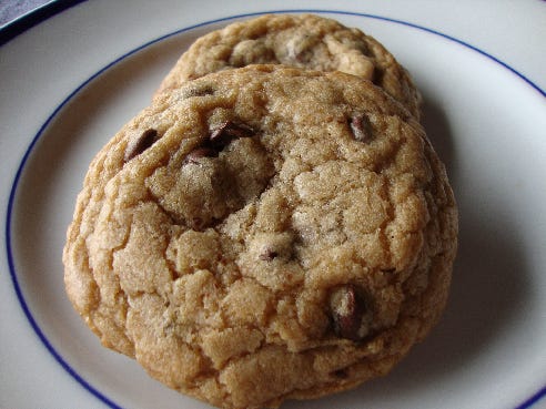 Here is one recipe from my Rancho La Puerta gluten-free baking class, Chocolate Chip Cookies. These are huge (I like my cookies big) and they’re easy to mix up, easy to bake, and they taste great. Note that my recipe uses only ½ teaspoon baking soda. This amount is just right. Too many chocolate chip cookie recipes use too much baking soda, causing the cookies to spread out and become thin instead of staying on the thickish side and having a nice chew.