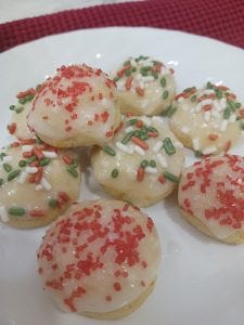 These are tender, puffy-looking cookies that are not too sweet, with a pleasing anise and orange flavor. They are typically made at Christmas, but they are welcome at any time of the year.