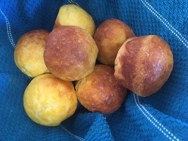 When in doubt, bake! that's my motto, and it's what I do. You may want to, too. In fact, I encourage you to. The act of baking and the appetizing aromas that you'll inhale will create happiness and good appetite. So I suggest you bake brioche, the classic buttery, eggy French bread, in a new no-knead way from Cooks Illustrated magazine. The dough rises in the fridge for 16 to 48 hours. So you won't get instant gratification, but you will have fabulous bread the next day. I've adapted the procedure to include making brioche buns in addition to loaves. Happy baking!