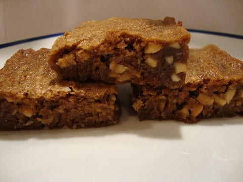Butterscotch, cooked sugar with butter, is always a winner in my book. The cookies are very moist, not too sweet, and--let me warn you--it’s hard to stop eating them. There's just something about sweet, toasty, bitterness that makes it irresistible. In the recipe here, I've paired it with crunchy roasted peanuts in a blondie version of a brownie. And the combination is, well, wow!