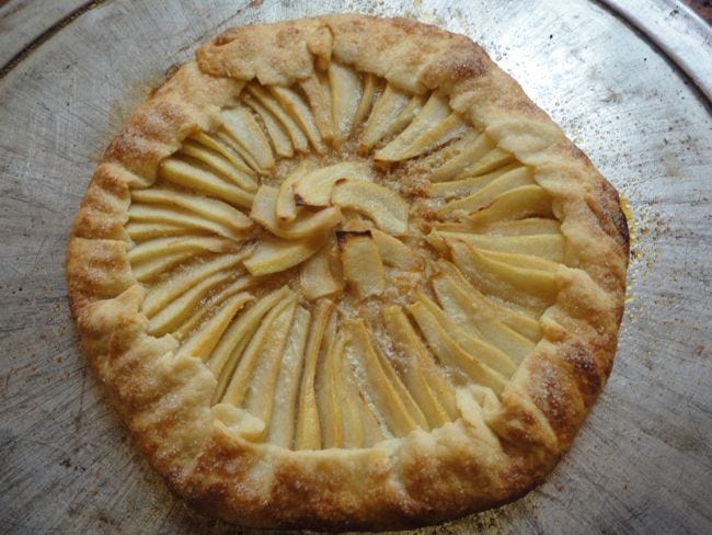 Teaching at Rancho La Puerta is always full of surprises. The guests who sign up for my classes are a diverse group of extremely accomplished people from all walks of life. But in the kitchen, we’re all equals, because in the time we have together there is one aim: to cook a menu of seven recipes in two hours and to sit and enjoy the meal together. Cooking is all about the pleasures of the table and the sense of community it fosters. At my first class, Dana Shaltry, a pediatric orthodontist, volunteered to make the dessert, a rustic French pear galette. I had demonstrated how to make the ground almond bases and pastry with a food processor, and Dana took it from there. He rolled the dough into a rough circle, cut the pears into thin slices, and arranged the fruit beautifully over the ground almonds. Once the fruit is arranged, he sprinkled on some sugar, scattered dots of butter on top, and folded the sides of the dough around the pears, pressing firmly to adhere. After baking, we served wedges of the galette with a spoonful of creme fraiche.