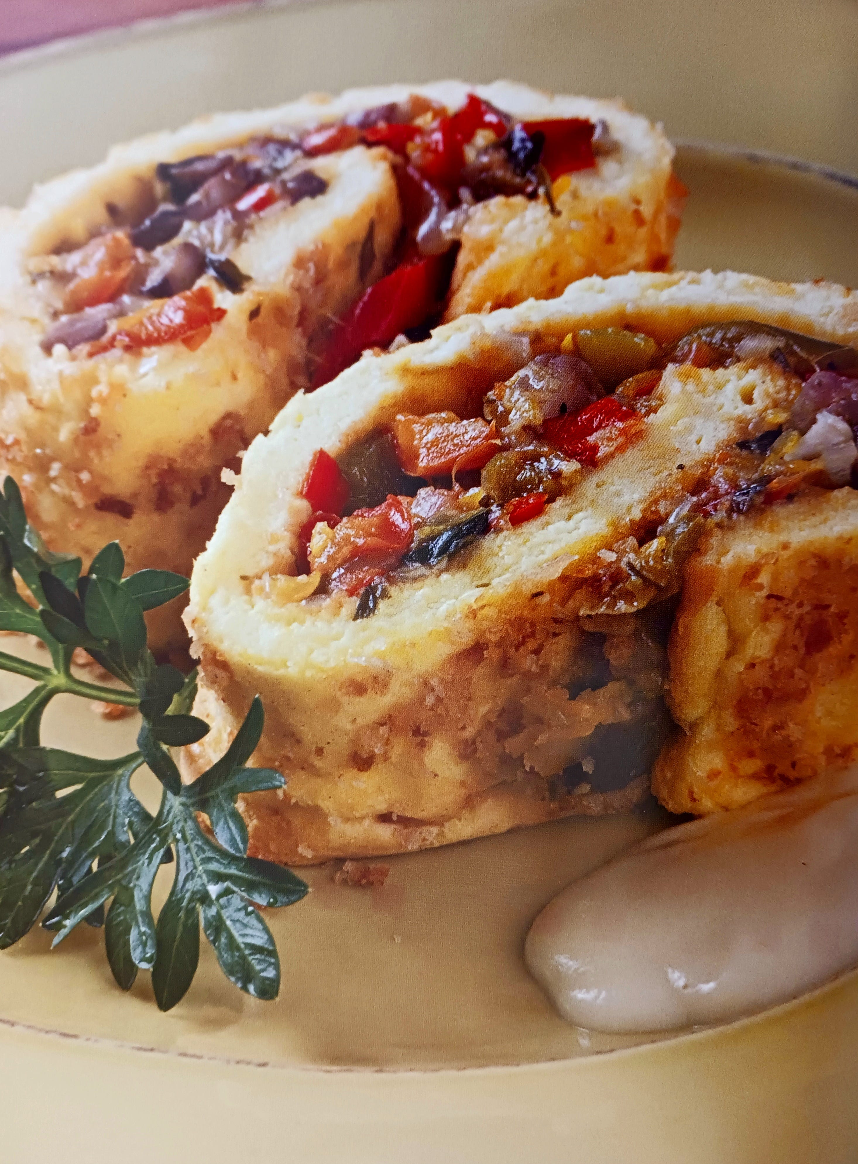 Souffle Roulade with Mushroom, Zucchini, and Bell Pepper