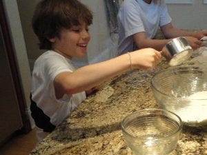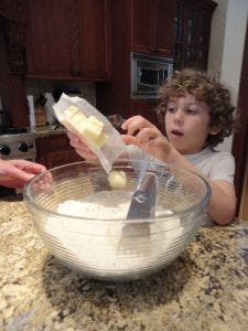 Just last week while I was in Chicago with my wife visiting our three grandsons, I was astonished to find ripe local strawberries at the Lincoln Park Farmers’ Market. “The berries are three weeks early,” a seller told me. “And it’s because of the amazingly warm weather we’ve been having. Here. Try one.” I bit into the tender berry and was amazed by its sweet and abundant juiciness. There is simply nothing like the deliciousness of a homegrown organic berry. I bought two quarts and decided to make strawberry shortcake with my grandsons. The boys, ages 6, 8 ½ and 11, like to help out in the kitchen. I had them measure out the flour, cut in the butter, and stamp the dough into individual shortcakes. I hulled the berries, whipped the cream, and assembled the desserts. My wife, Dorothy, took the pictures. This year I just may have to make strawberry shortcakes once more when our local berries ripen. But you can’t blame me, can you?